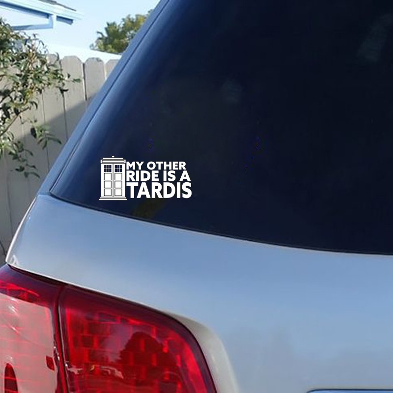 Use these removable decals to decorate your car window laptop tablet phone case or anything else you can think of. Who my other vehicle is a tardis vinyl decal sticker car window laptop ebay. The most common doctor who car decal material is plastic.