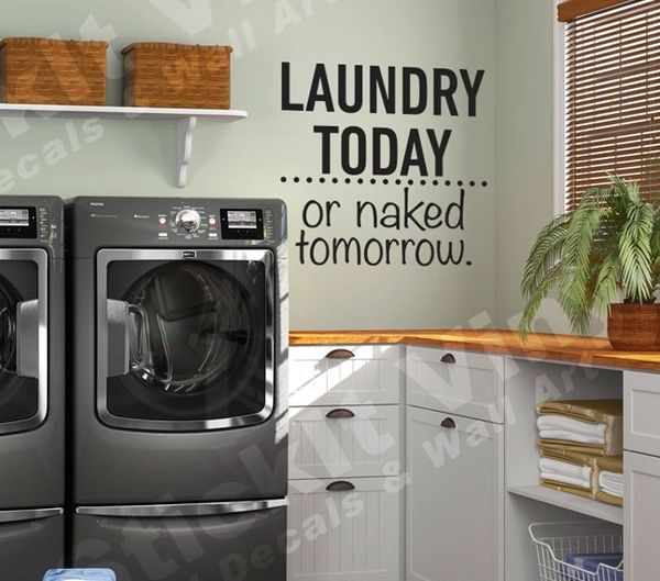 Laundry today or naked tomorrow vinyl wall decal empresal laundry today or naked tomorrow vinyl wall quote decal sticker room decor saying. Decal 21 inches x 6 inches made from high quality removeable vinyl that will last years and will not damage the surface applied to can be applied to any clean smooth surface all decals are cut and ready to apply just rub them on and pull off the transfer tape and. Laundry or naked funny wall quote decal wallums description this funny wall quote decal will lighten up your laundry room.